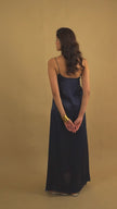 The Midnight Gown is a vision of understated elegance. This full-length slip dress, in a rich, deep blue, falls with an elegant drape that moves beautifully with you. It's a versatile piece for sophisticated evenings at home or a grand night out, offering a sense of timeless style and comfort.